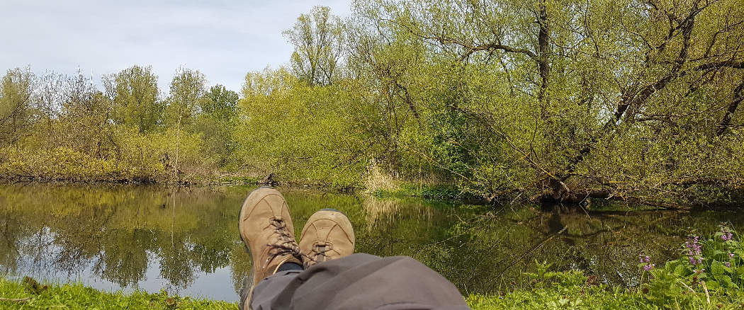 Danach geht’s weiter, vorbei am alten historischen Bahnhof, prächtigen Villen, blühenden Gärten und insgesamt ganz viel Natur. Mitten in der Stadt stehen auf beiden Uferseiten große alte Bäume, deren dichte Kronen sich über dem Fluß treffen. Die Sonnenstrahlen dringen gerade noch von oben durch das grüne Blätterdach. Vögel zwitschern, es ist angenehm schattig. Hier erinnert die ruhige westliche Okerumflut ein kleines bisschen, es ist kaum zu glauben, fast an den Amazonas.