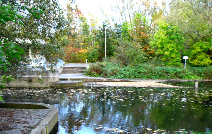 Die Picknickpause findet am Okerdüker in Watenbüttel statt. Hier verschwindet der Fluß kurz in einem Tunnel (Düker) unter dem Mittellandkanal.