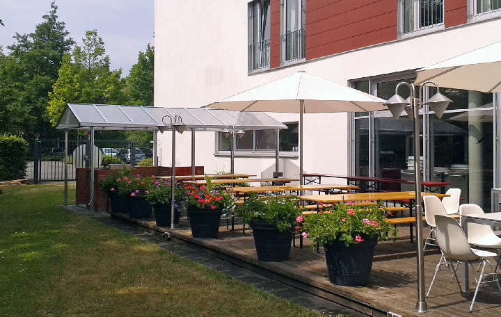 Extras: Der Caterer stellt vor Ort diverse Getränke zur Verfügung: Bier mit/ohne Alkohol, Cola, Fanta, Bionade, Apfelsaftschorle, Wasser, und mehr. Abrechnung der Getränke nach Verbrauch.