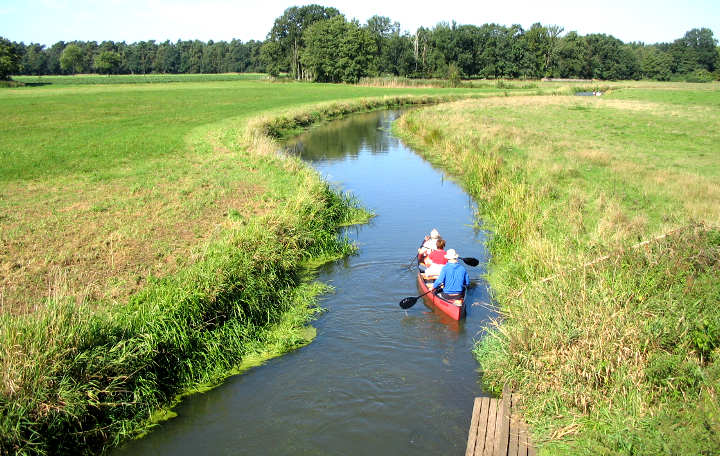 Ab hier ist die Aller bei normalem Wasserstand gut befahrbar. Die geringe Strömung eignet sich für eine gemächliche und erholsame Paddeltour.